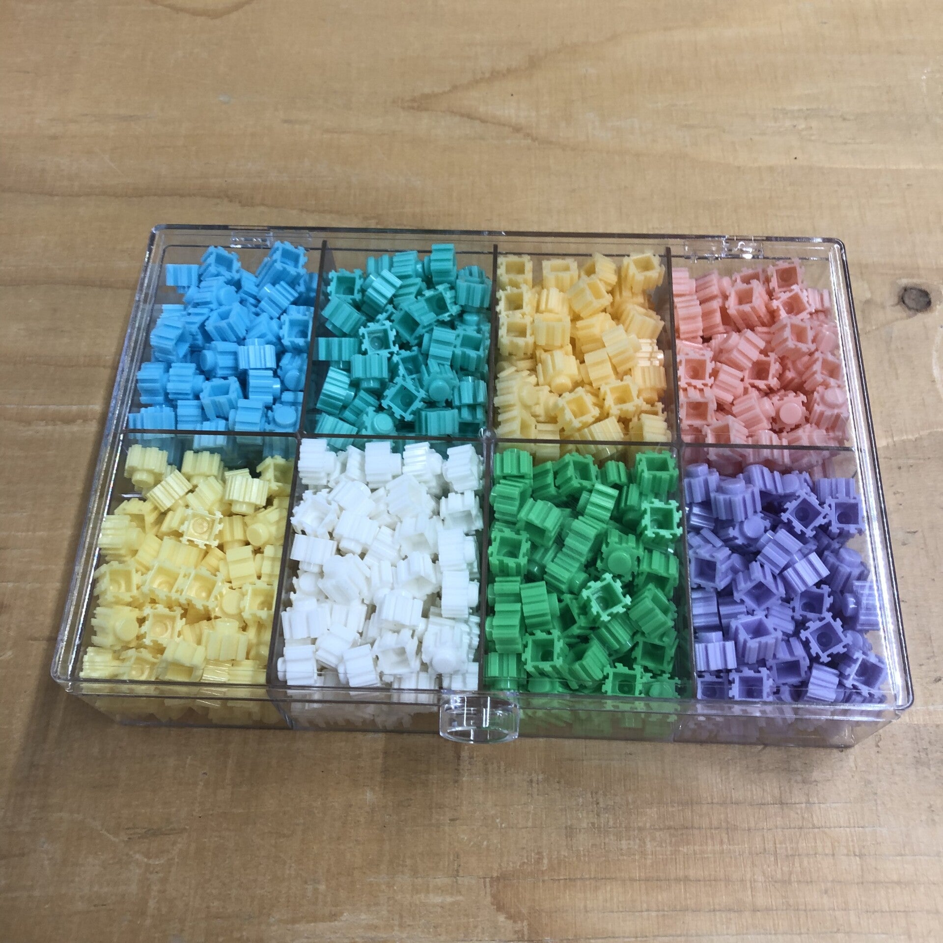 8 kleuren - ongeveer 100 brokjes per kleur, in prachtige pasteltinten
